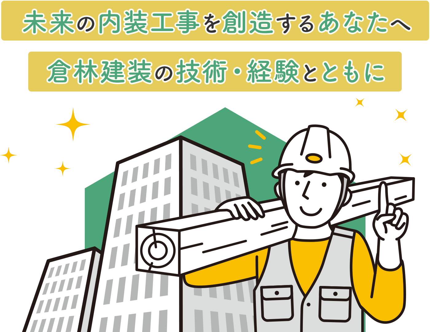 若い力が活躍できる魅力的な職場で、自分の能力を試し、やりがいを感じながら成長していくことができます。当社と一緒に内装工事の世界で輝くキャリアを築きませんか?
